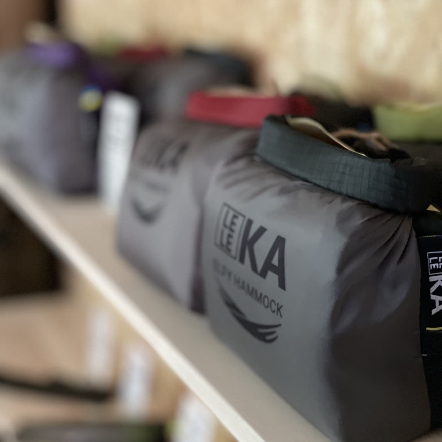 LELEKA HAMMOCKの全商品(カラー、サイズ等)を展示し、実際にPixy、Elfyの各ハンモックに乗ってサイズ感や色、寝心地をお試しいただけます。